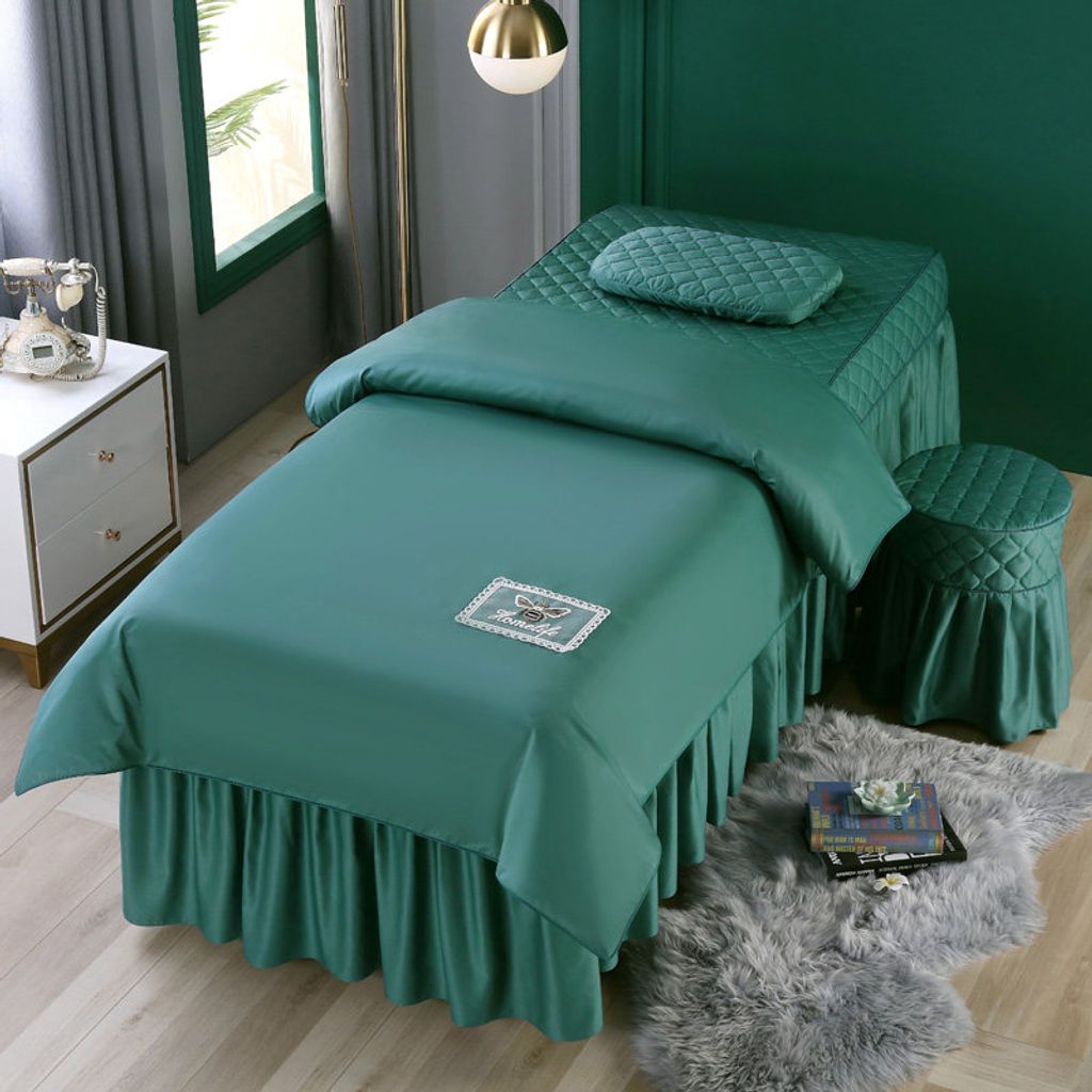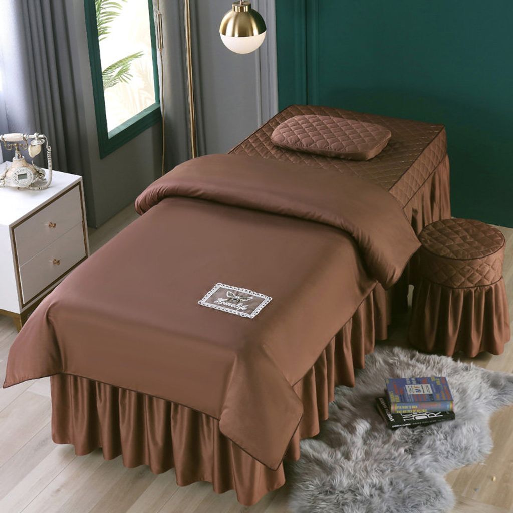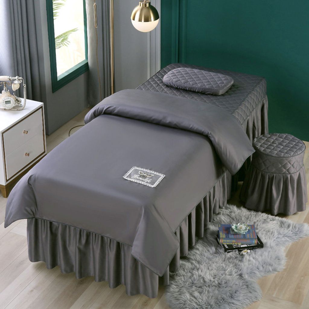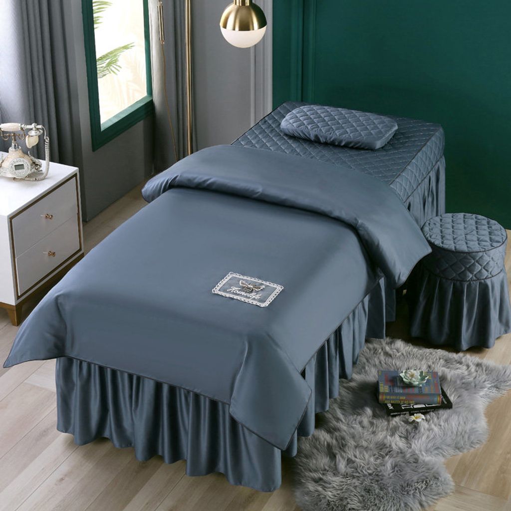 歐式貢緞簡約純色帶洞美容床罩 | 理療推拿按摩專用美容床單 | 美容床包四件組 | 美容床套可訂做Logo 送被芯