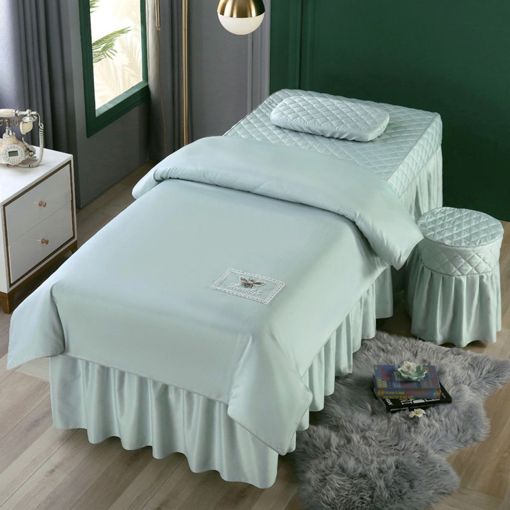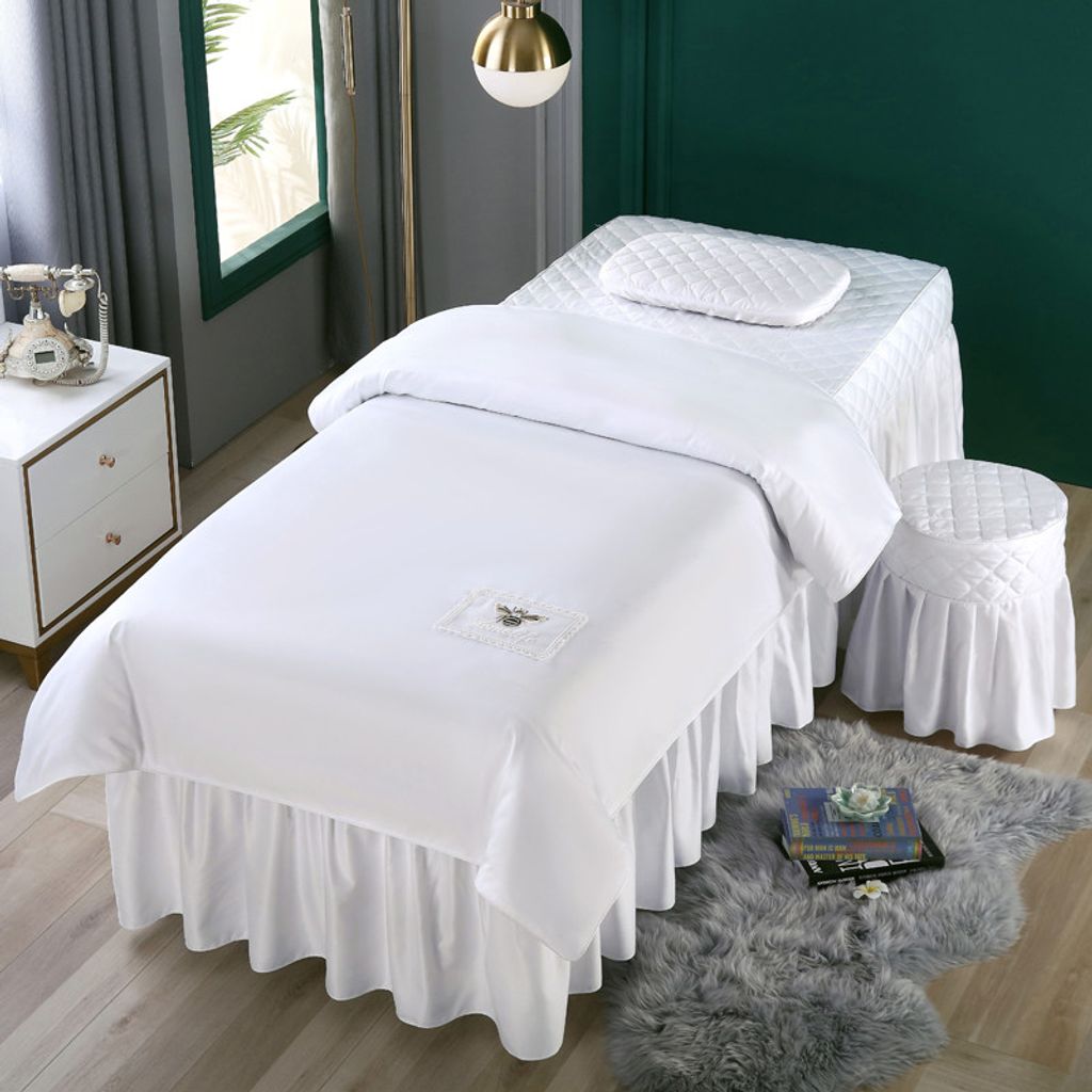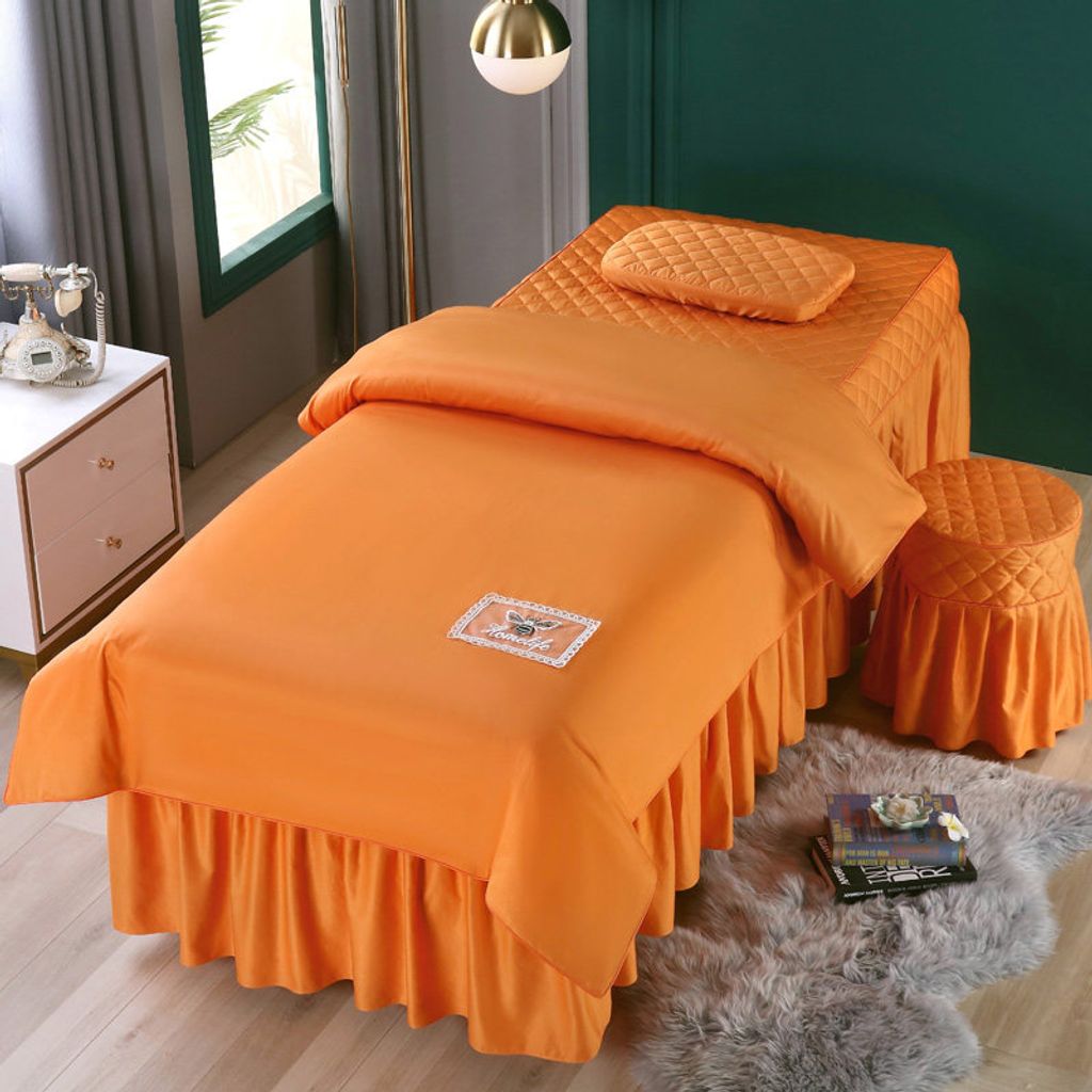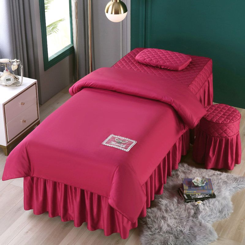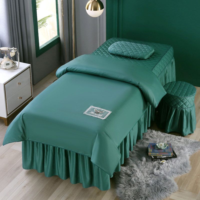 歐式貢緞簡約純色帶洞美容床罩 | 理療推拿按摩專用美容床單 | 美容床包四件組 | 美容床套可訂做Logo 送被芯