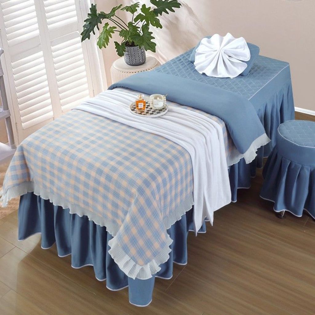 - 格子蓝色 / 80*190方头四件套带被芯