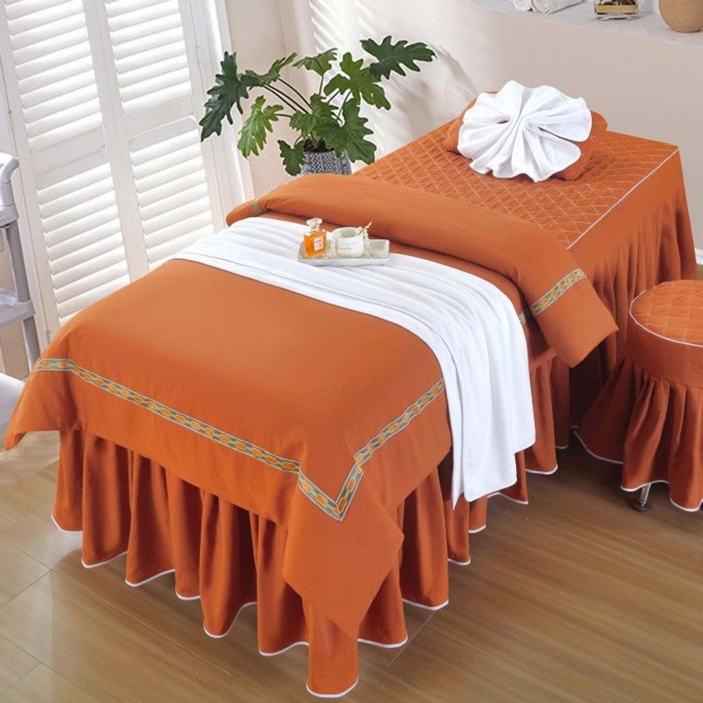 - 纯色桔色 / 70*190圆头四件套带被芯