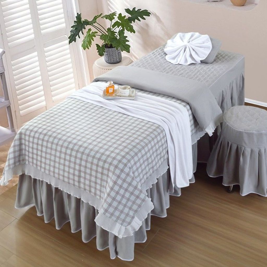- 格子灰色 / 80*190方头四件套带被芯