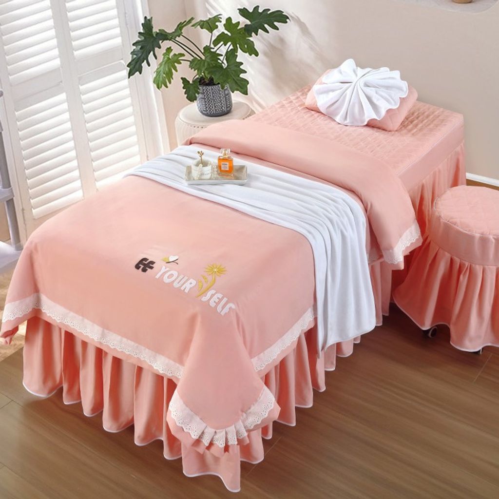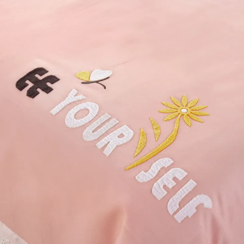- 公主风刺绣【粉色】 / 80*190方头四件套带被芯