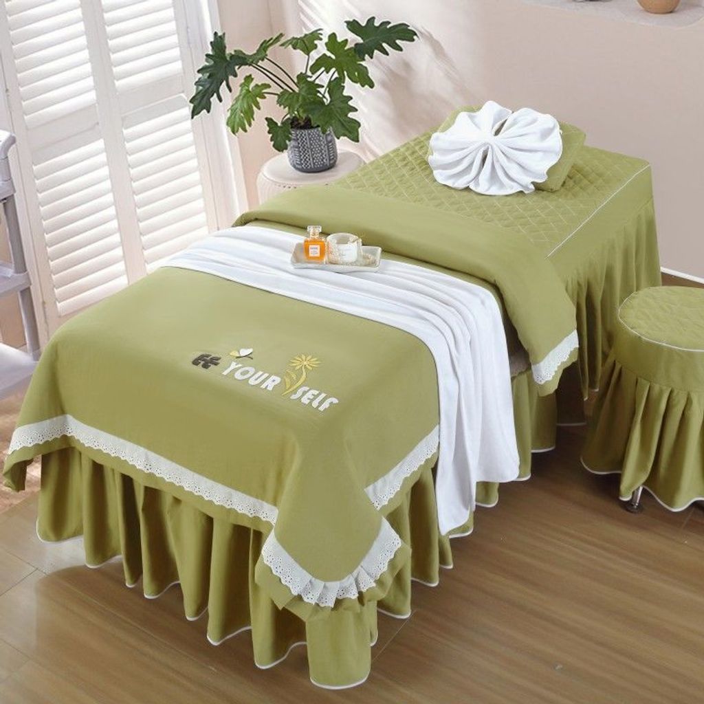 - 公主风刺绣【果绿色】 / 80*190方头四件套带被芯