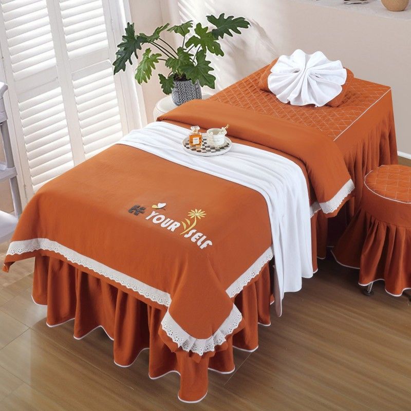 - 公主风刺绣【桔色】 / 70*190方头四件套带被芯