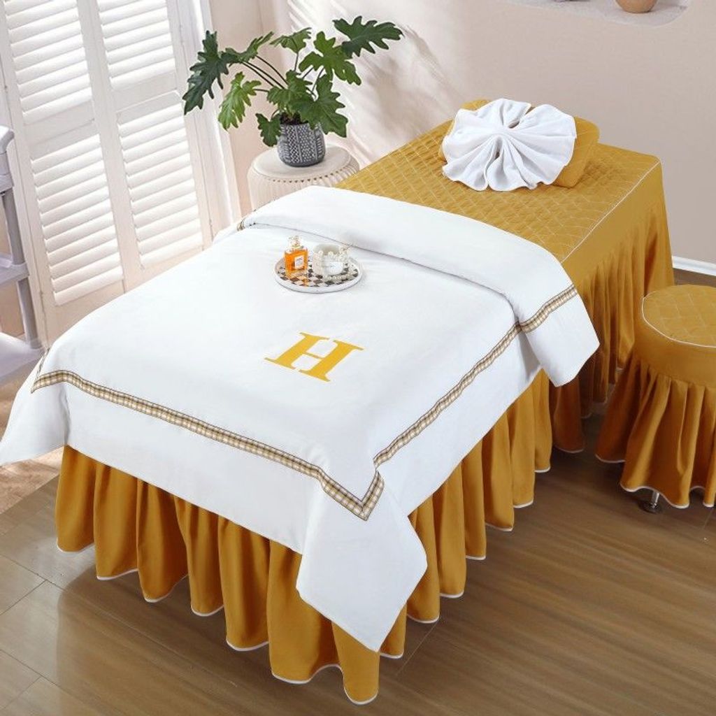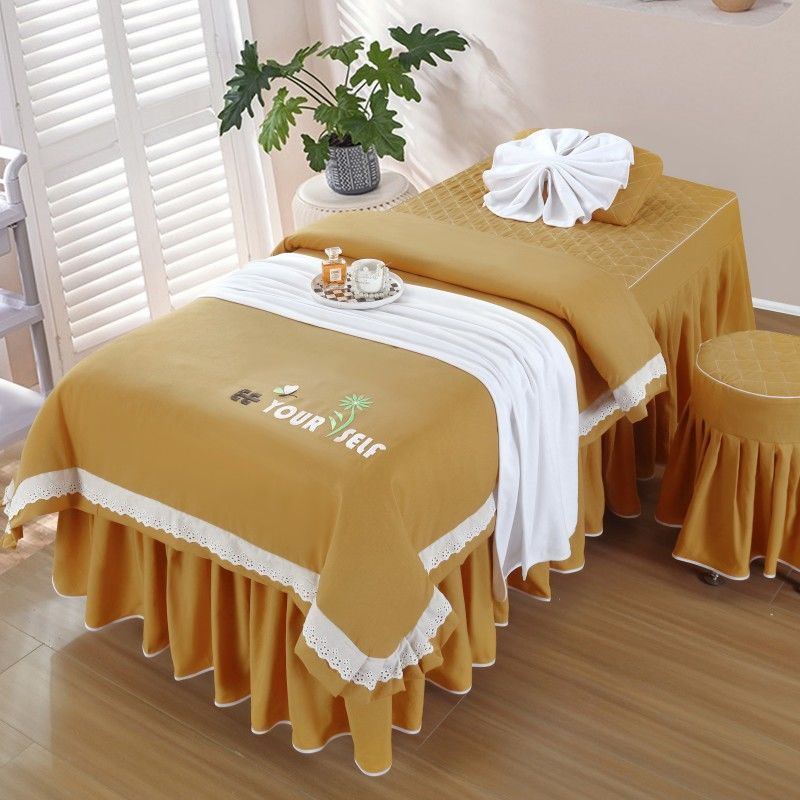 - 公主风刺绣【金黄色】 / 80*190方头四件套带被芯