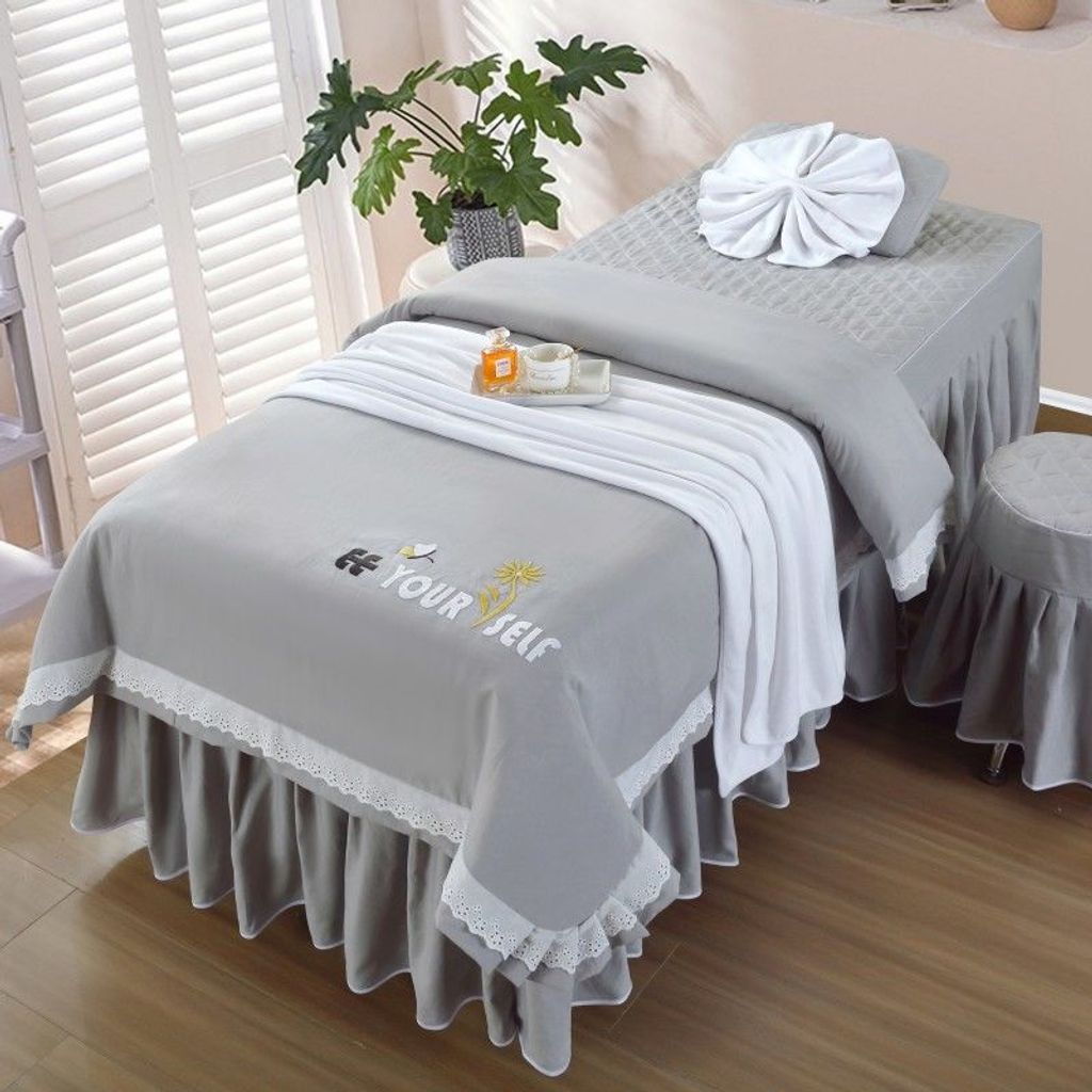 - 公主风刺绣【灰色】 / 80*190方头四件套带被芯