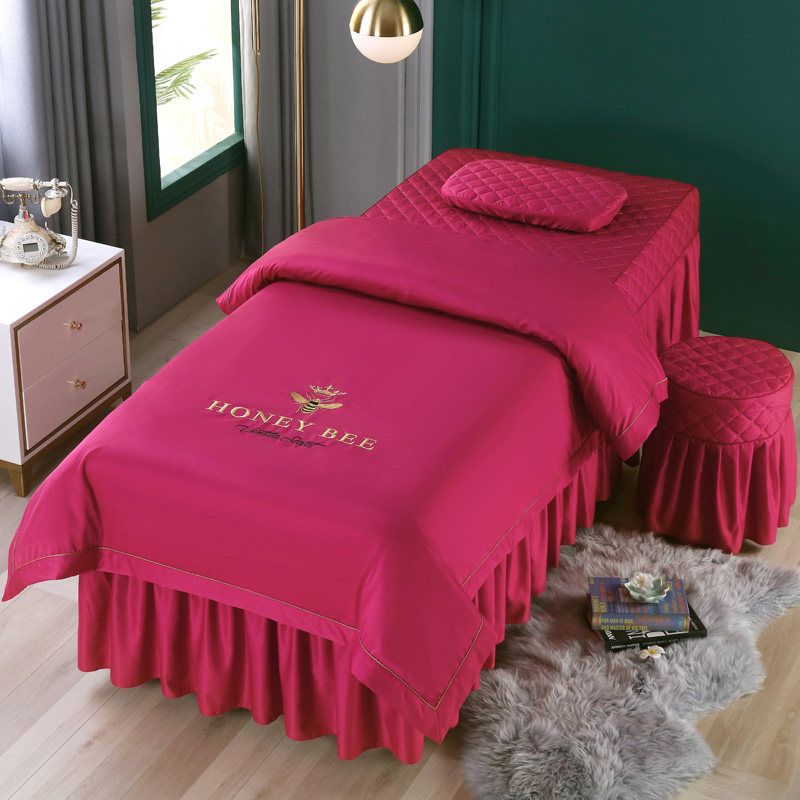 - 梅红—刺绣蜜蜂 / 70*190方头四件套【送被芯】