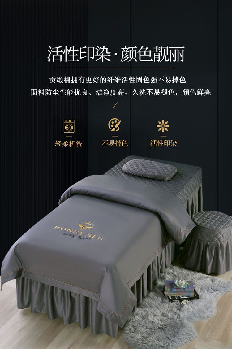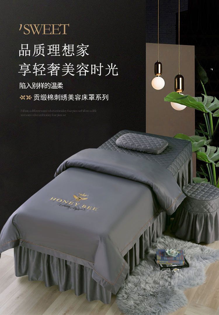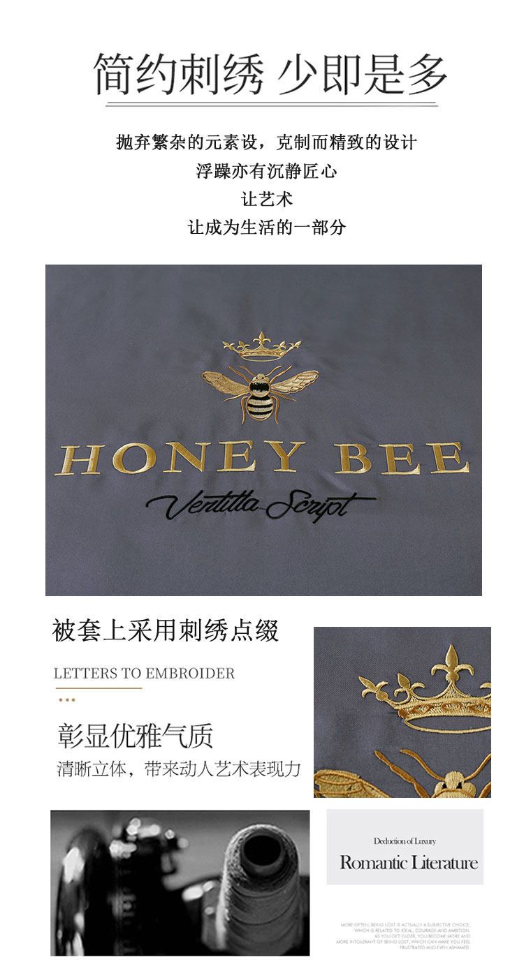 - 深灰—刺绣蜜蜂 / 70*190方头四件套【送被芯】