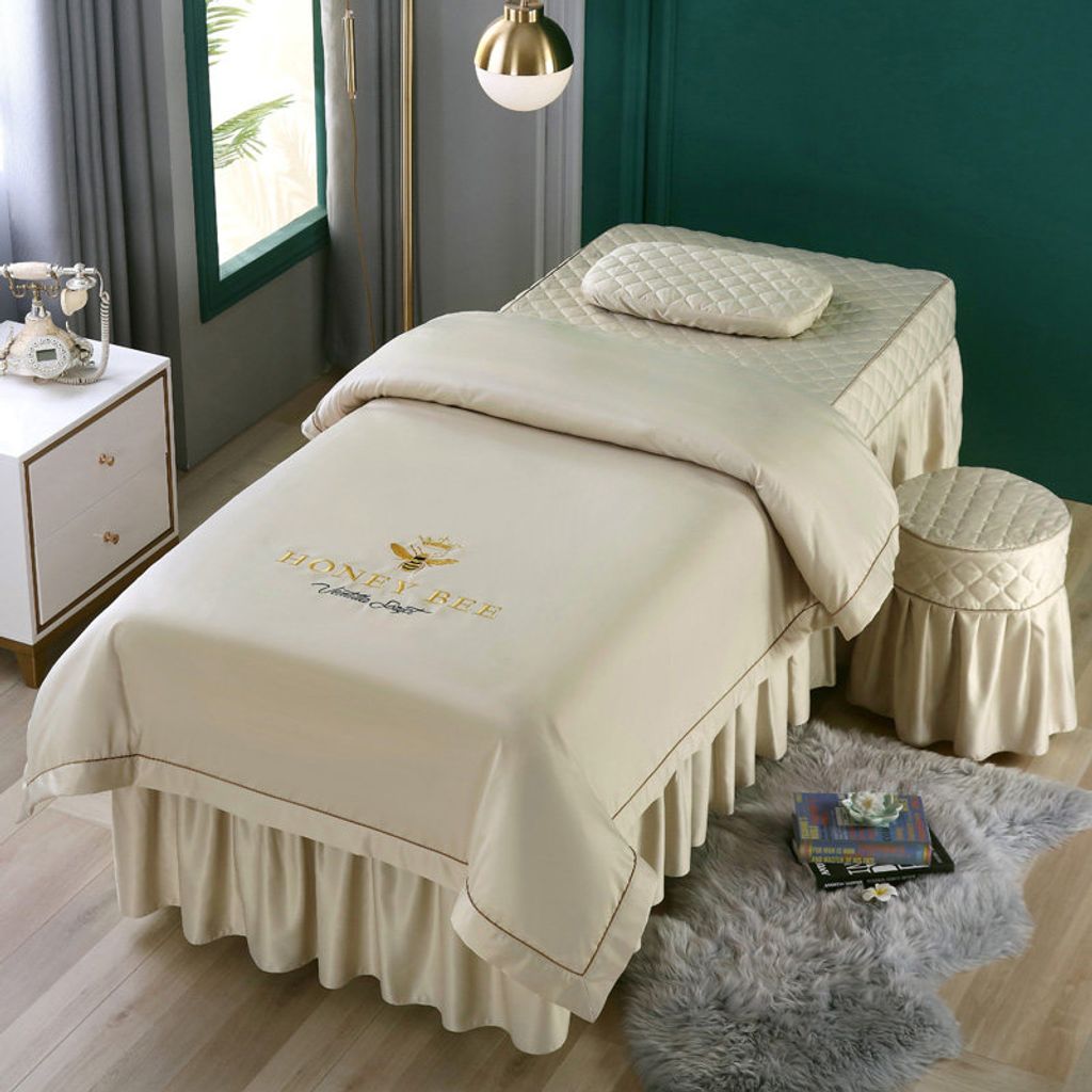- 白色—刺绣蜜蜂 / 80*190方头四件套【送被芯】
