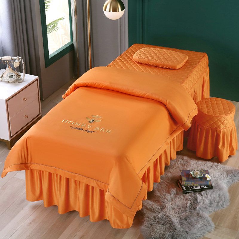 - 桔黄—刺绣蜜蜂 / 70*190方头四件套【送被芯】