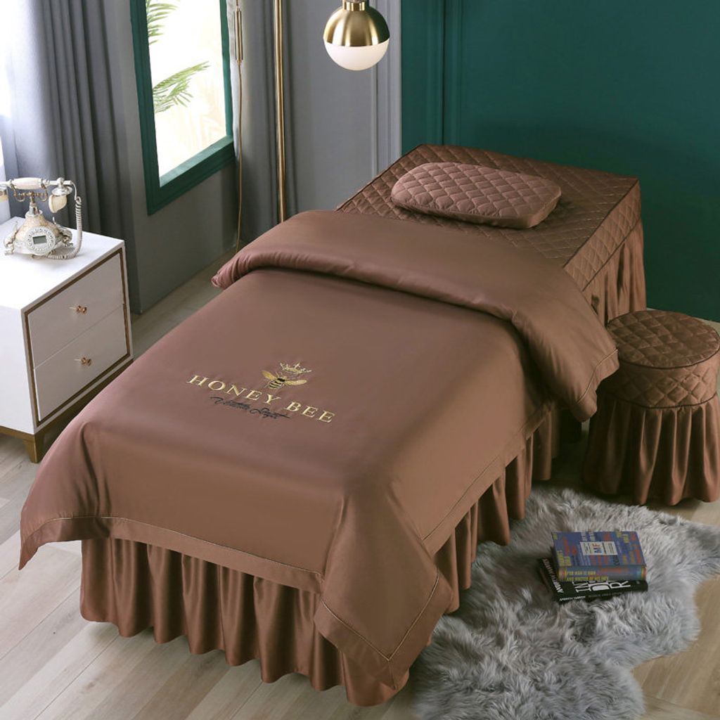 - 咖啡—刺绣蜜蜂 / 70*185方头四件套【送被芯】