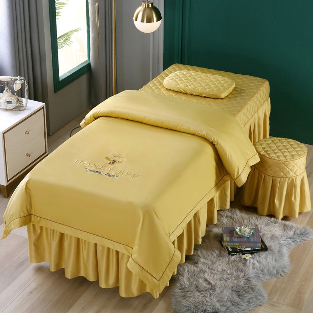 - 姜黄—刺绣蜜蜂 / 70*190方头四件套【送被芯】