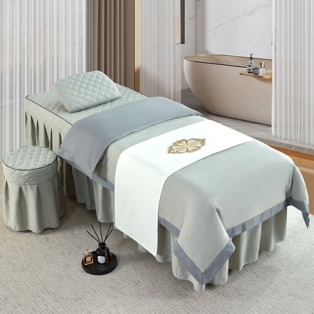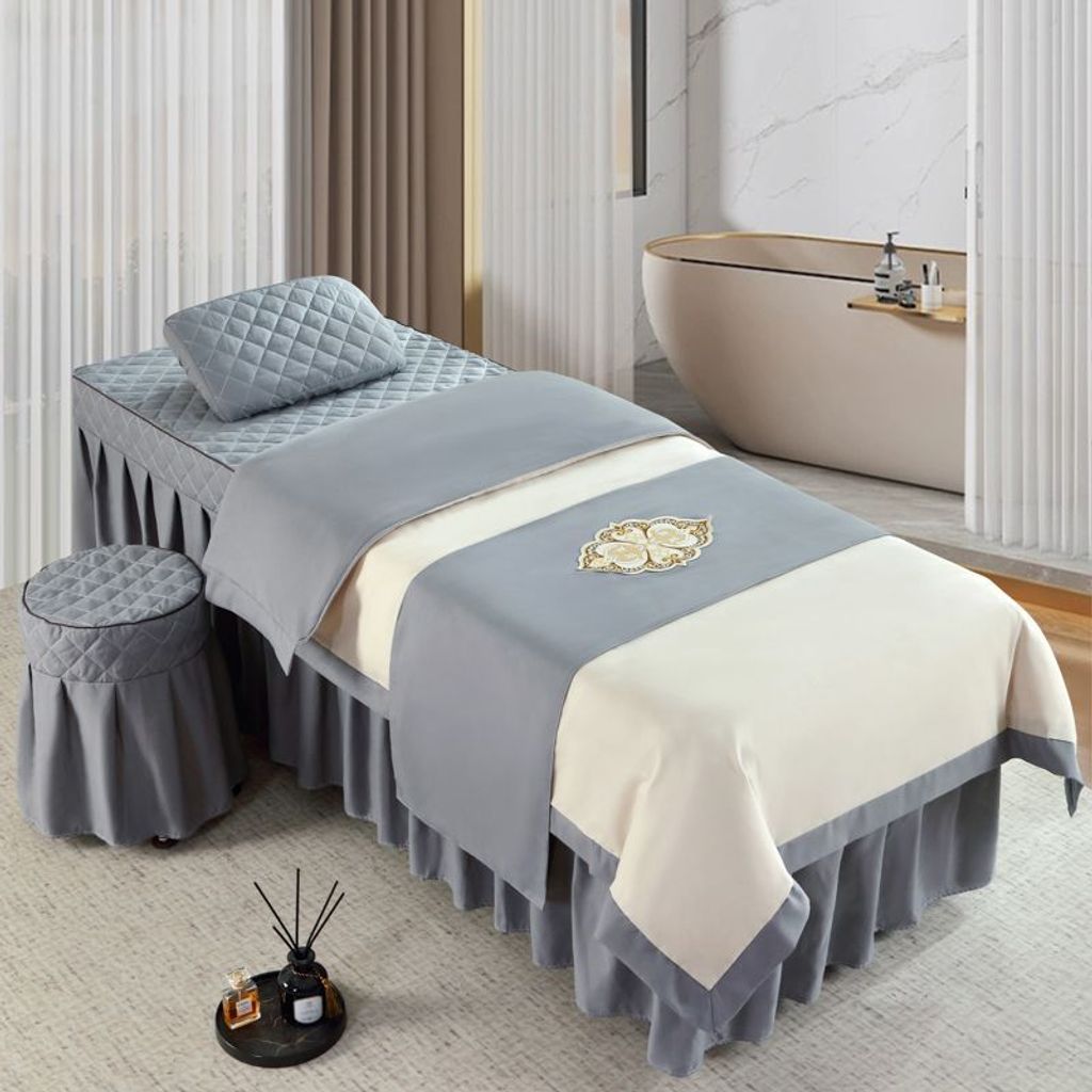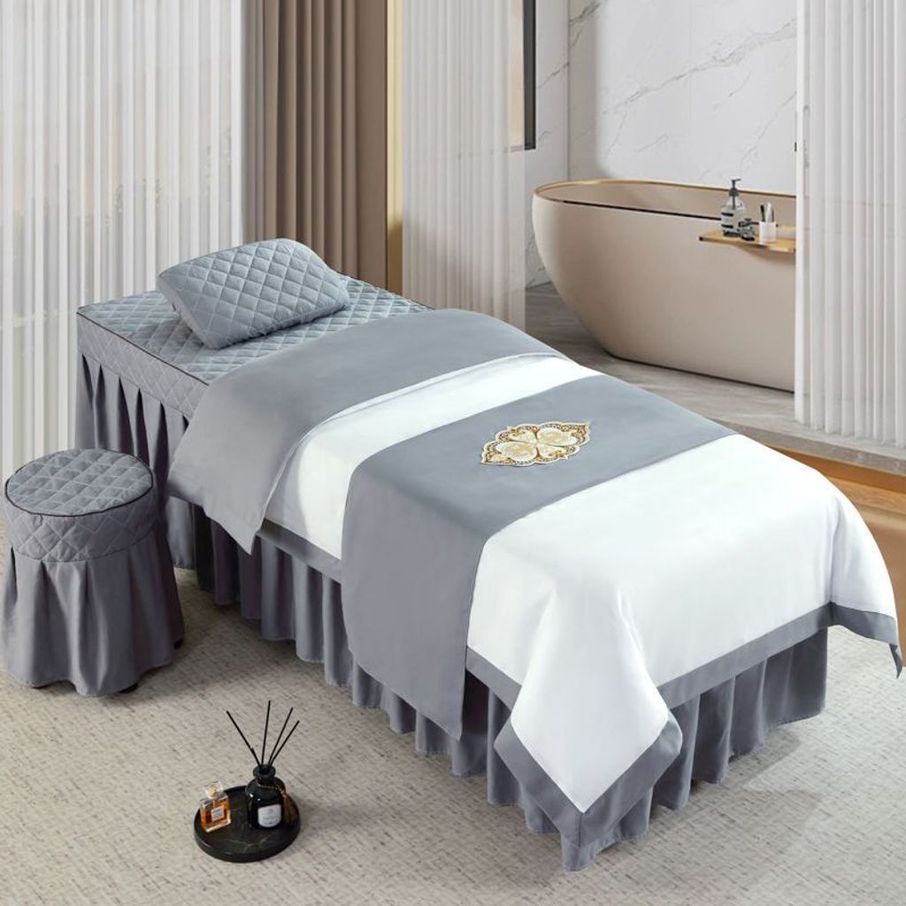 - 拼白色配高级灰 / 方头185X70 四件套