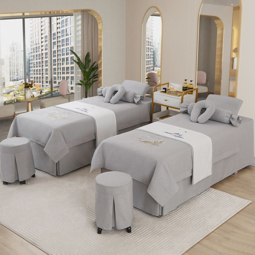 - 雅士-经典灰+米白 / 方头床180*60cm四件套送被芯
