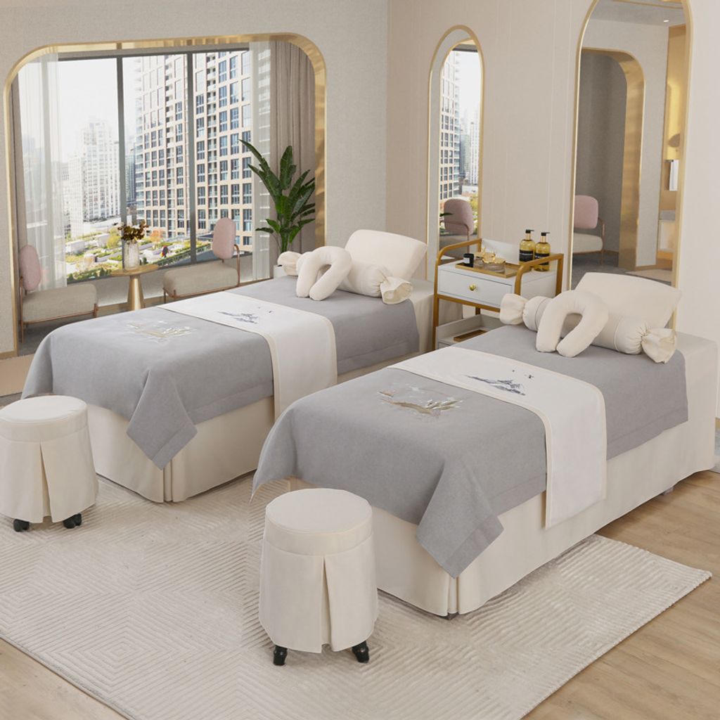 - 雅士-米白+经典灰 / 方头床180*70cm四件套送被芯