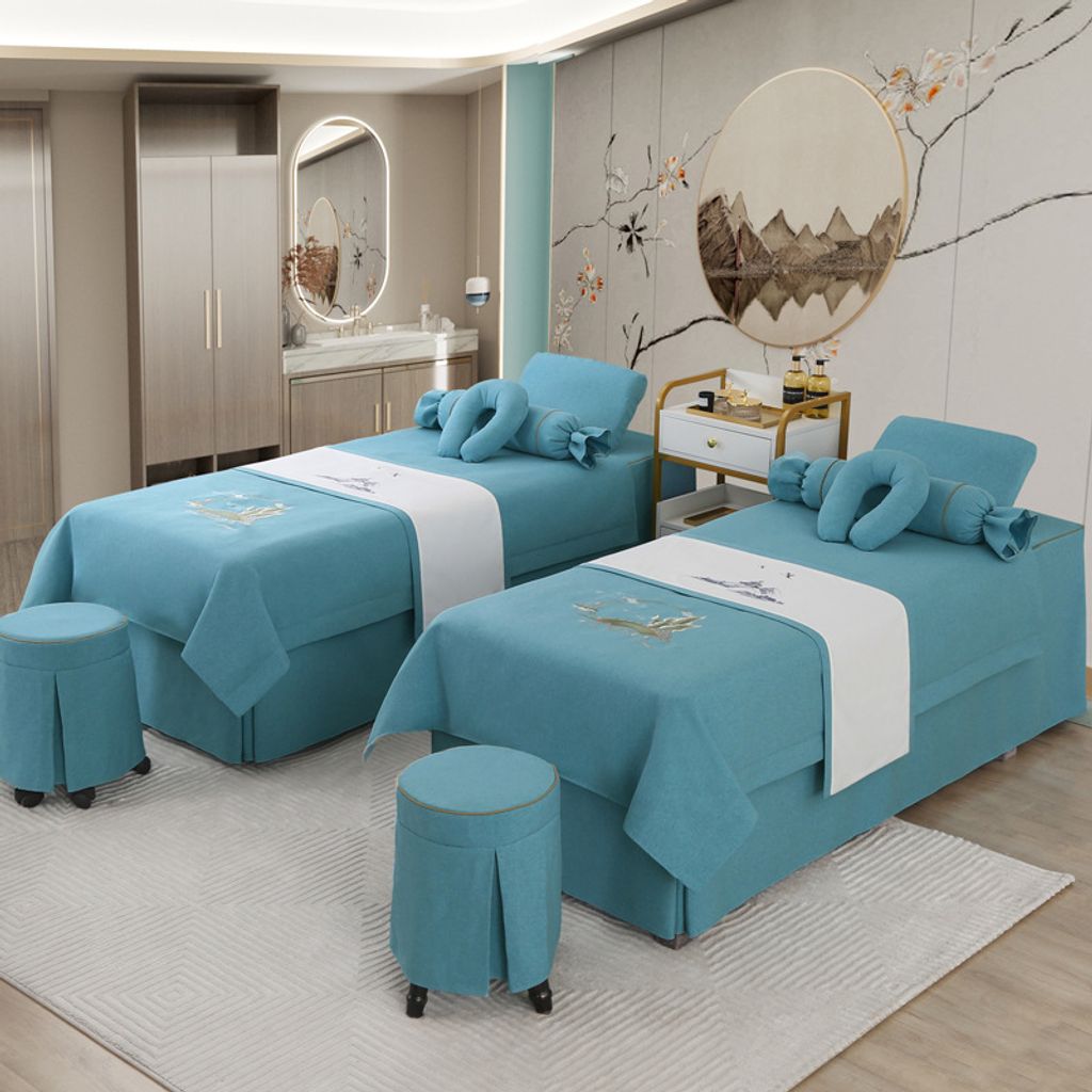 - 雅士-湖蓝 / 方头床180*60cm四件套送被芯